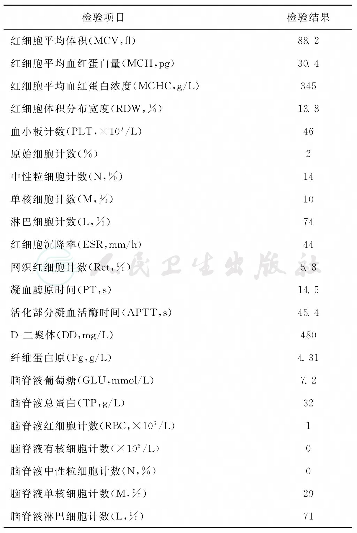 实验室部分检验结果见表1、表2。尿液分析正常。