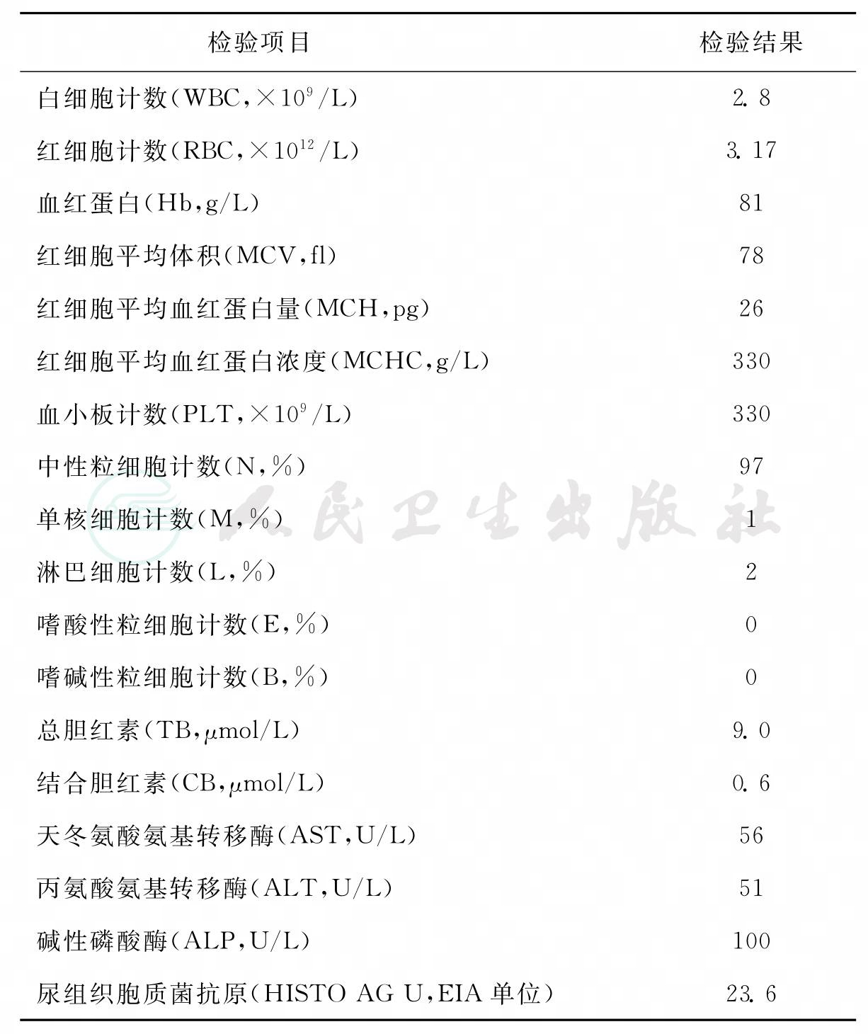 表1 实验室部分检验结果