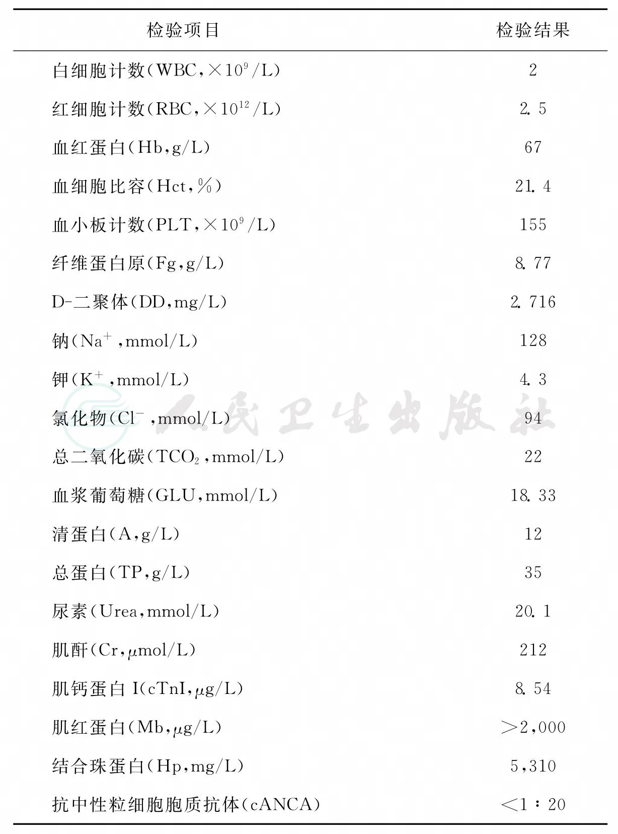 表1 主要实验室检验结果