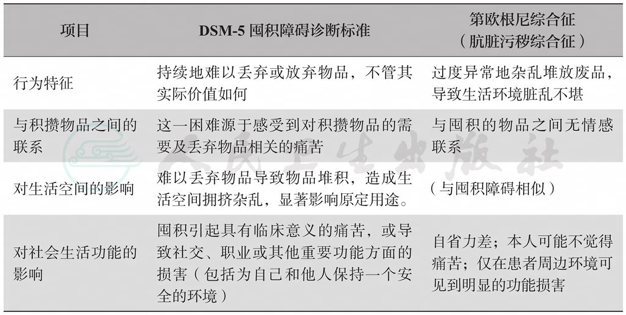 | 项目 DSM-5囤积障碍诊断标准 第欧根尼综合征 (肮脏污秽综合征) |