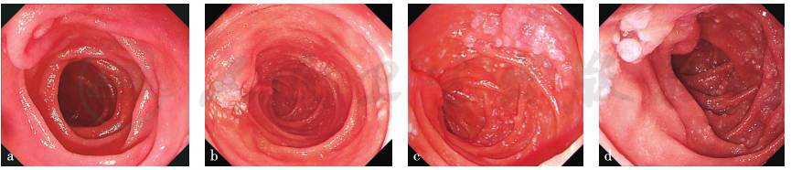 复查胃镜(2018年9月12日)见胃窦见弧形瘢痕,表面轻度充血。十二指肠球部散在颗粒样白色隆起,降部上段见密集白色颗粒样隆起,以十二指肠主乳头表面为著(较2018年2月6日无明显加重),十二指肠降部下段至水平段近端散在白色细颗粒样隆起(图2)。