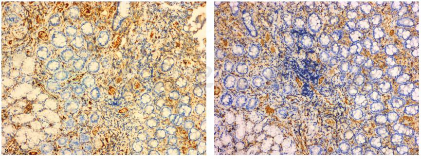 图3 十二指肠乳头活检组织IgG4免疫组化(100×)