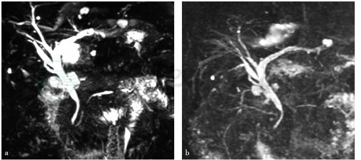 入院前特殊检查:CT检查和MRCP检查见图1。