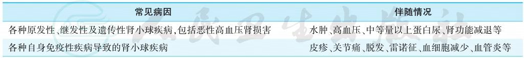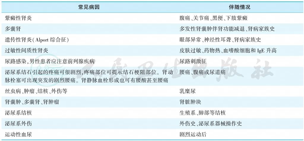 表1血尿的常见病因及伴随情况