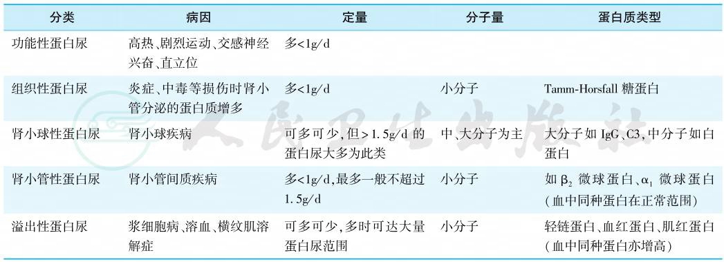 无症状性蛋白尿(asymptomatic proteinuria)是指轻、中度蛋白尿,不伴明显症状。可见于多种肾小球和肾小管-间质疾病以及功能性、溢出性和体位性蛋白尿(表3)。