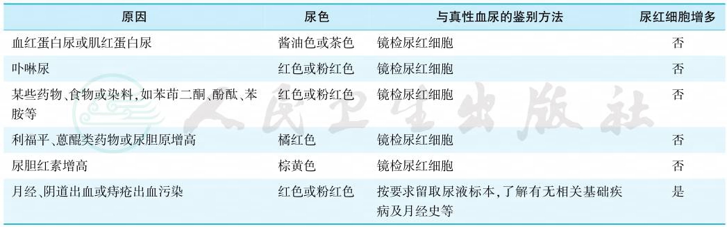 表4假性血尿可能的原因及其与真性血尿的鉴别方法