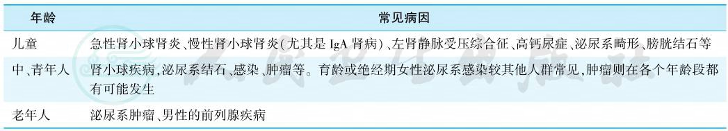 表2不同年龄患者血尿的常见病因
