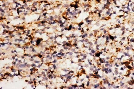 图2 瘤细胞CD68/(KPI)表达阳性 IHC×400