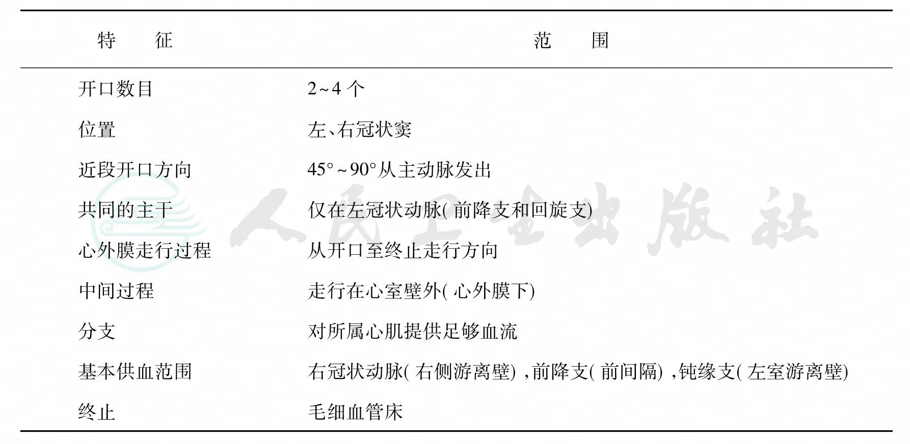 表1正常人冠状动脉解剖学特征