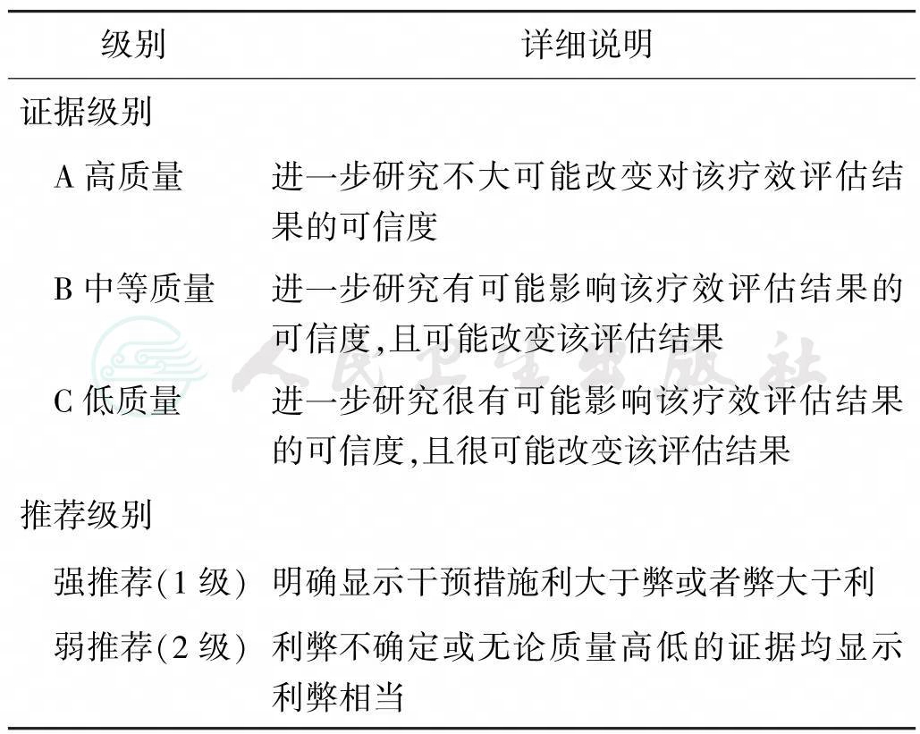 表1 推荐意见的证据等级和推荐等级