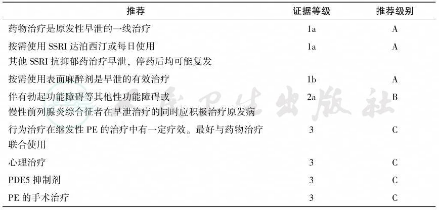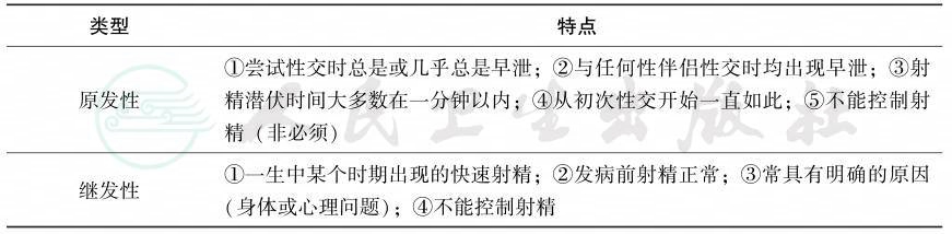早泄指南将早泄分为两种类型,即原发性早泄和继发性早泄(表3-3)。