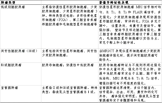 表2 脑胶质瘤影像学诊断要点