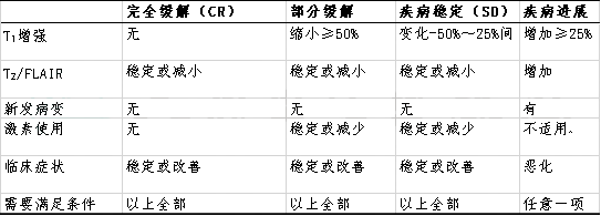 表3. 脑胶质瘤治疗效果评估 RANO 标准