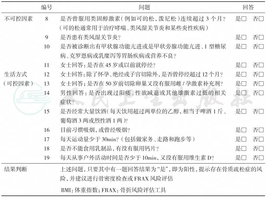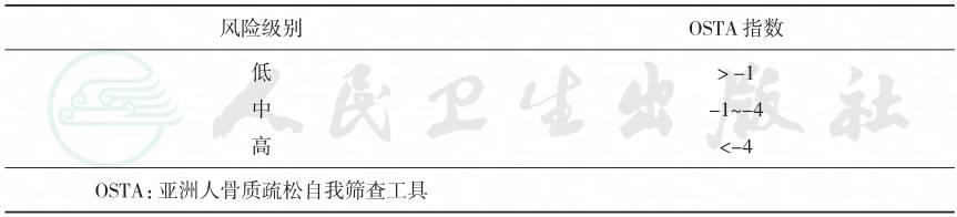 注:IOF:International Osteoporosis Foundation国际骨质疏松基金会;OSTA:Osteoporosis Self-assessment Tool for Asians亚洲人骨质疏松自我评定工具