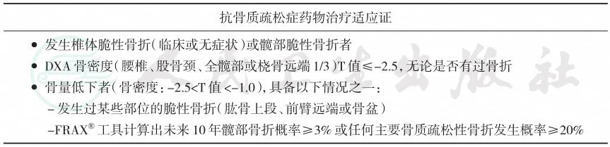 | 抗骨质疏松症药物治疗适应证 |