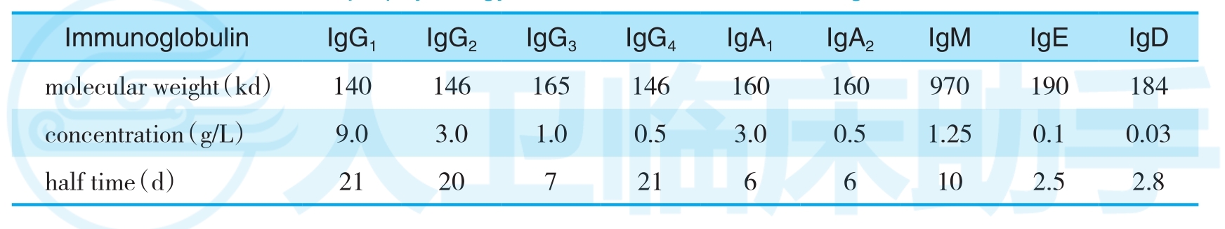 Tab. 14-2 Major physiology characters of serum immunoglobulin in adults